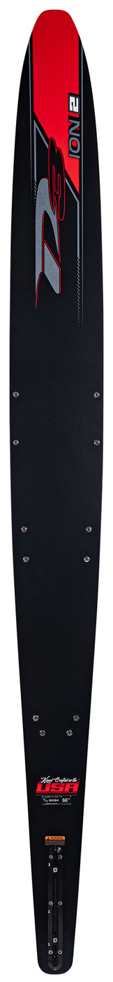 The same natural balance and equilibrium of a traditional shaped slalom ski has been maintained in the ION 2. The ski is best ridden with a balanced stance over the middle of the ski.
