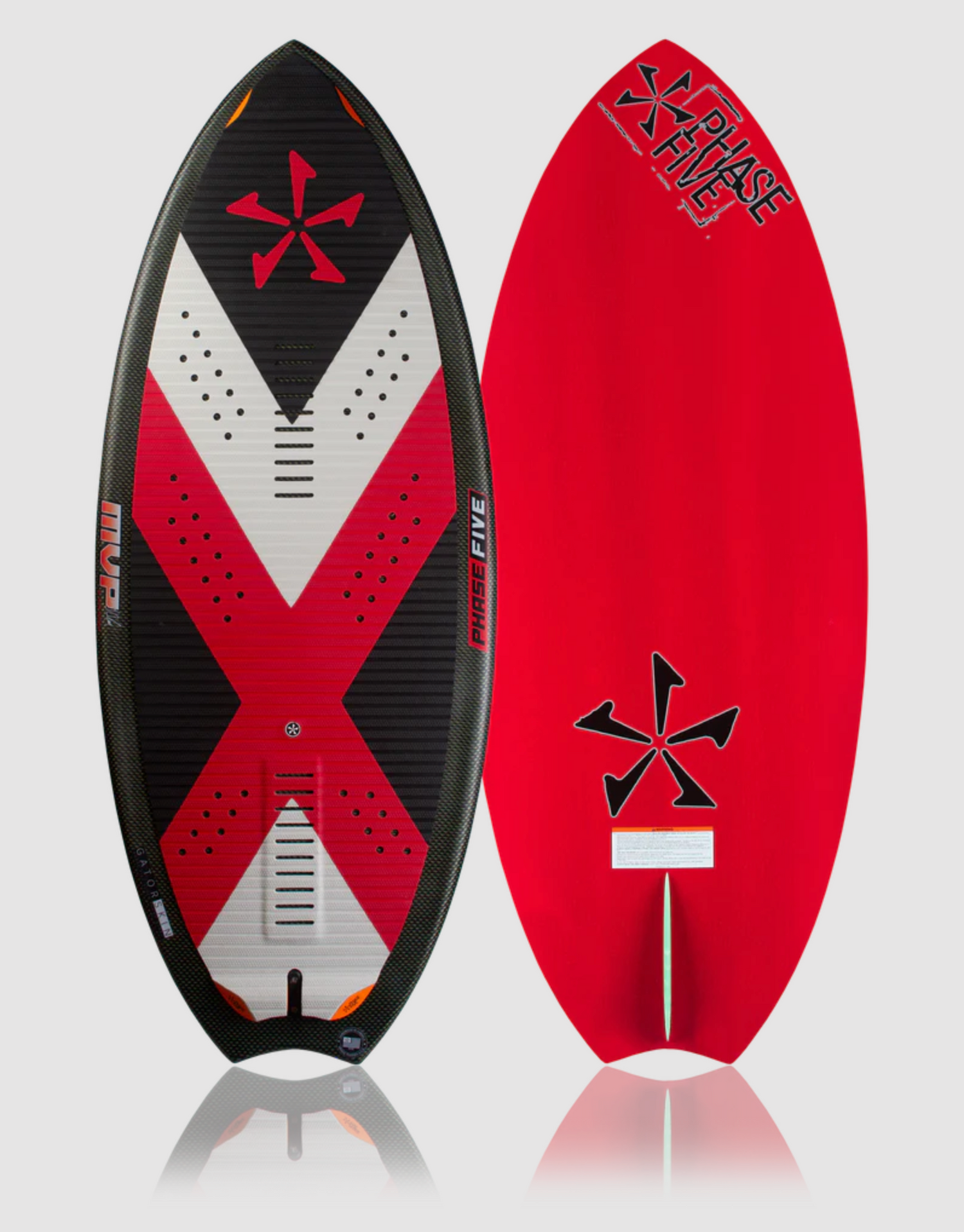 Supporting aggressive skim style riding, the Phase Five MVP Wakesurfer harnesses unique features not found anywhere else in our lineup. Features a full decked Techno Traction V2 EVA grip setup with nose kick tail support for superior foot control. John’s idea for a kick tail in the nose was to gain more leverage to execute tricks while riding revert. The MVP is the only board with our RidgeGrip™ technology, a unique rail design inspired by his direct feedback. RidgeGrip stiffens the board and offers a pronounced spot to grab when executing tricks above the lip. The moon tail design and V-Spline bottom contours deliver maximum speed and handling.